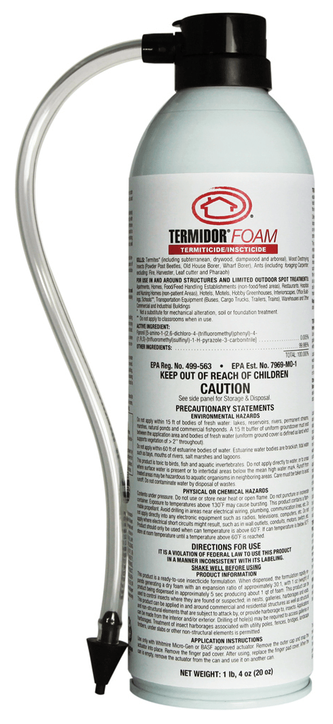 Termidor termiticide/insecticide is the most trusted termiticide in America, protecting over six million homes from termites. It achieves 100% control in three months or less. Termidor Foam termiticide/insecticide offers that same effectiveness in an easy-to-use foam formulation for treating troublesome termites and ants.
