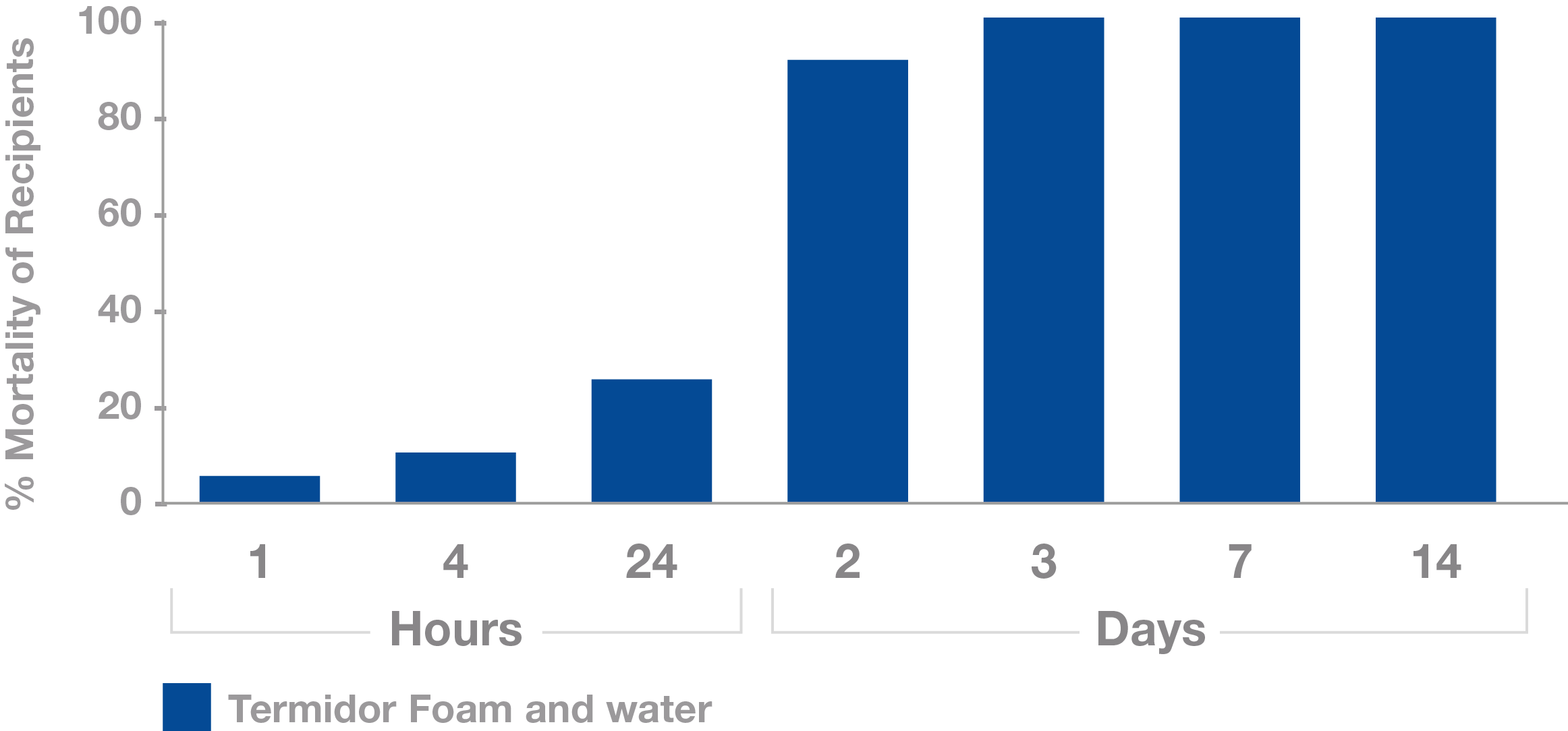 Termidor Foam termiticide/insecticide showed high activity (>90% mortality) by 8 hours.