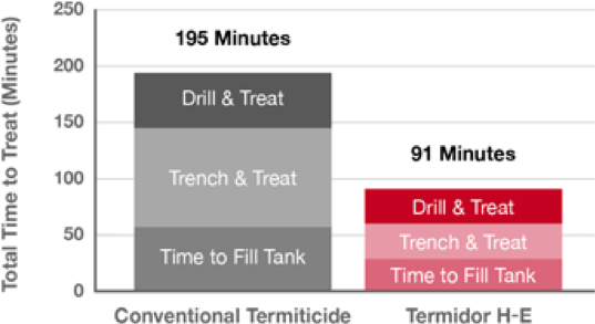 Termidor HE termiticide treatment is 50% more time-efficient than conventional termiticides